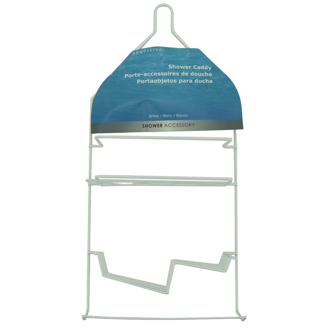 2-Shelf Shower Caddy with Soap Holder. Hangs Over Shower Head and Uses Suction Cups to Secure to Shower Wall.