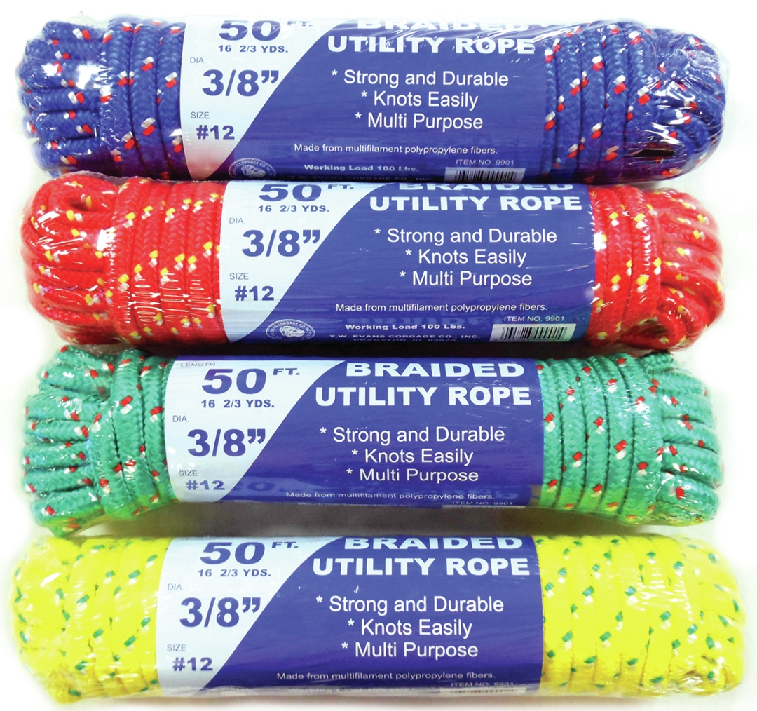 3/8" x 50' Braided Poly Utility Rope. Assorted Colors Per Case.