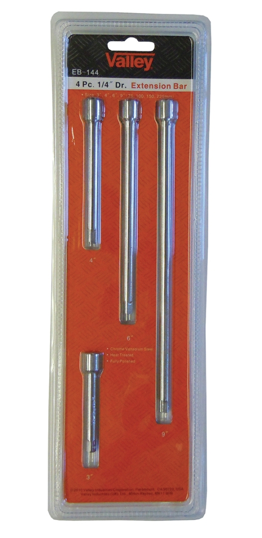 Spring loaded ball bearing to hold onto sockets Extension bars extend the user's reach to gain access to deep, narrow areas |