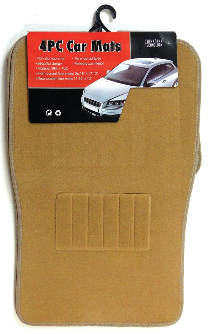 4 PC Automotive Car Mats. Includes 2 Front and 2 Rear Floor Mats with Knob Anti-Slip Backing