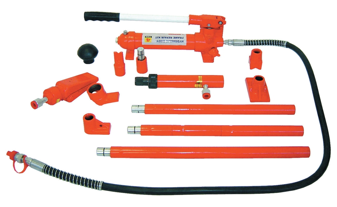 Hydraulic ram has an auto pump overload system designed to release the hydraulic valve in case of overload to protect against damage to rams and equipment 4 extension tubes,4-1/2",6-3/4",9-1/2" and 18-1/2" Hydraulic ram spreader | Serrated saddle, plunger toe, ram toe, male connector, wedge head, rubber head, flat base, and 90 degree v-base