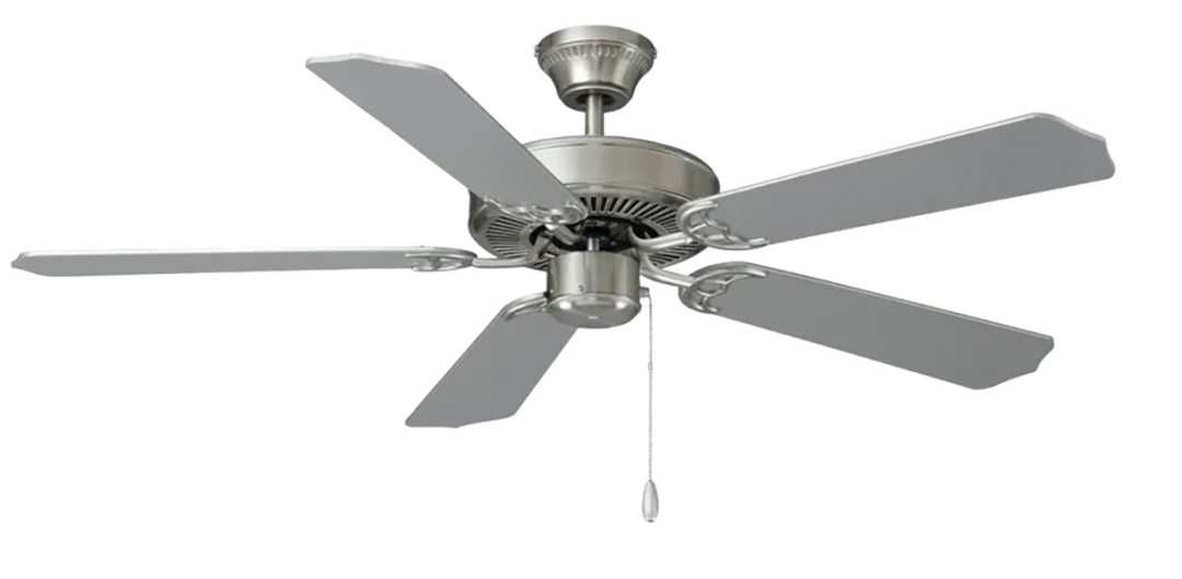 This Energy Star, High Efficiency AC Motor, 5-blade, 52” sweep, ceiling fan is a timeless and reliable classic that compliments any interior.