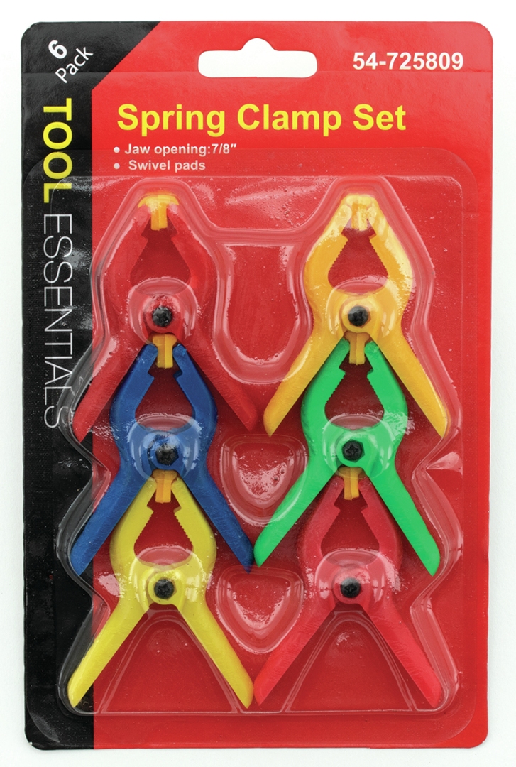 6 PC Spring Clamps - Assorted Colors. 7/8" Jaw opening.