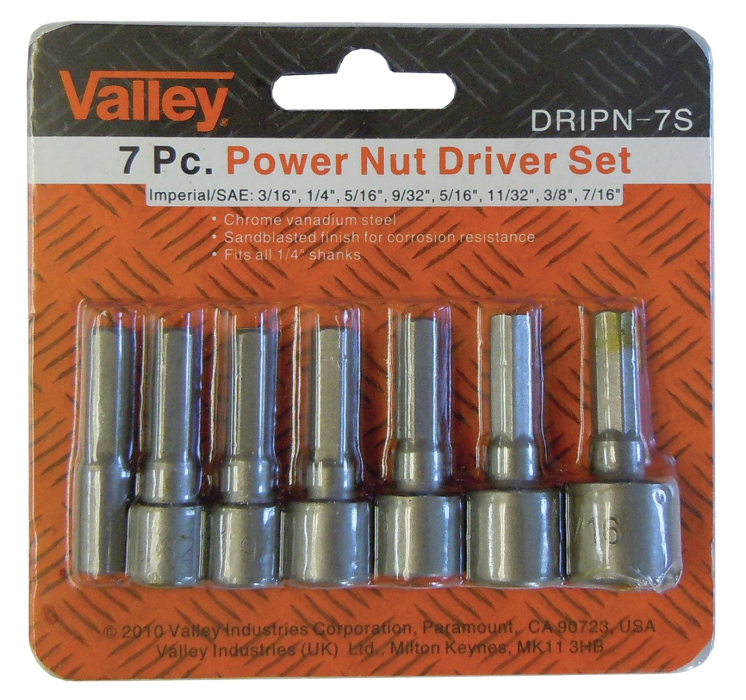 7 PC Metric Power Nut Driver Bit Set with 1/4" Hex Shanks. Set Includes: 5, 6, 7, 8, 9, 10, 11mm MORE»
