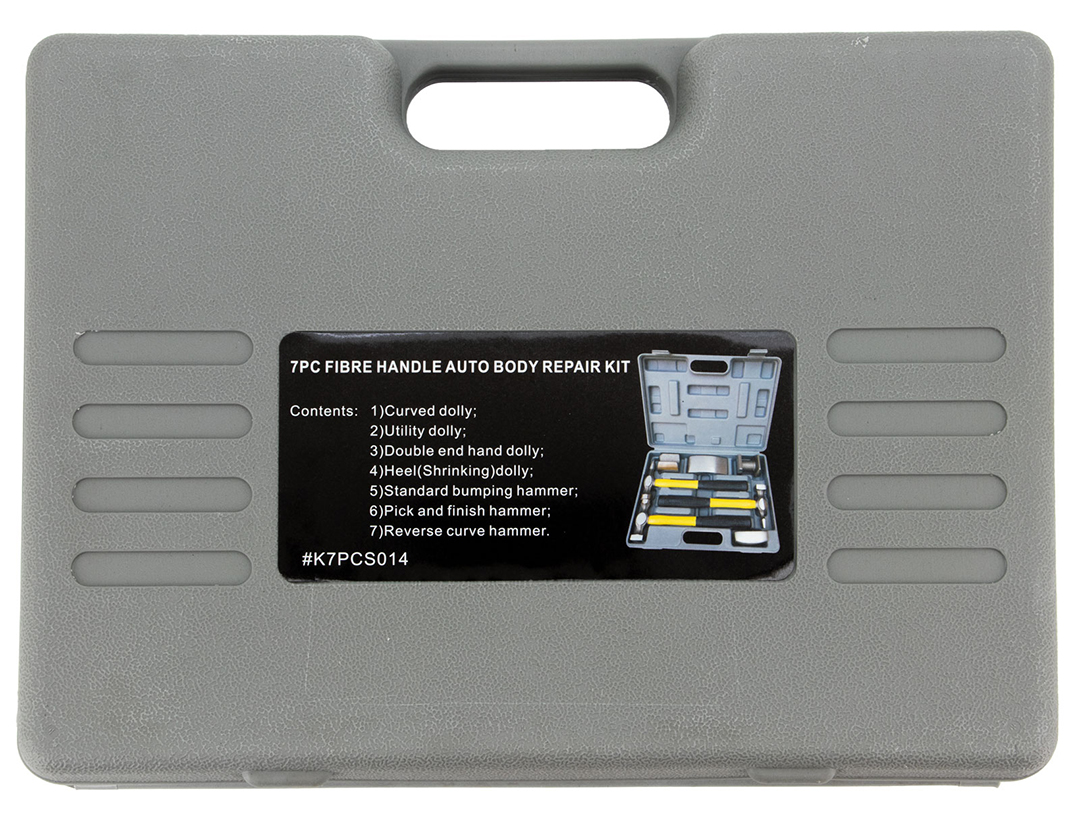 7PC Auto Body Repair Kit. Complete with Dollies and Fiberglass Handled Hammers and Storage Case