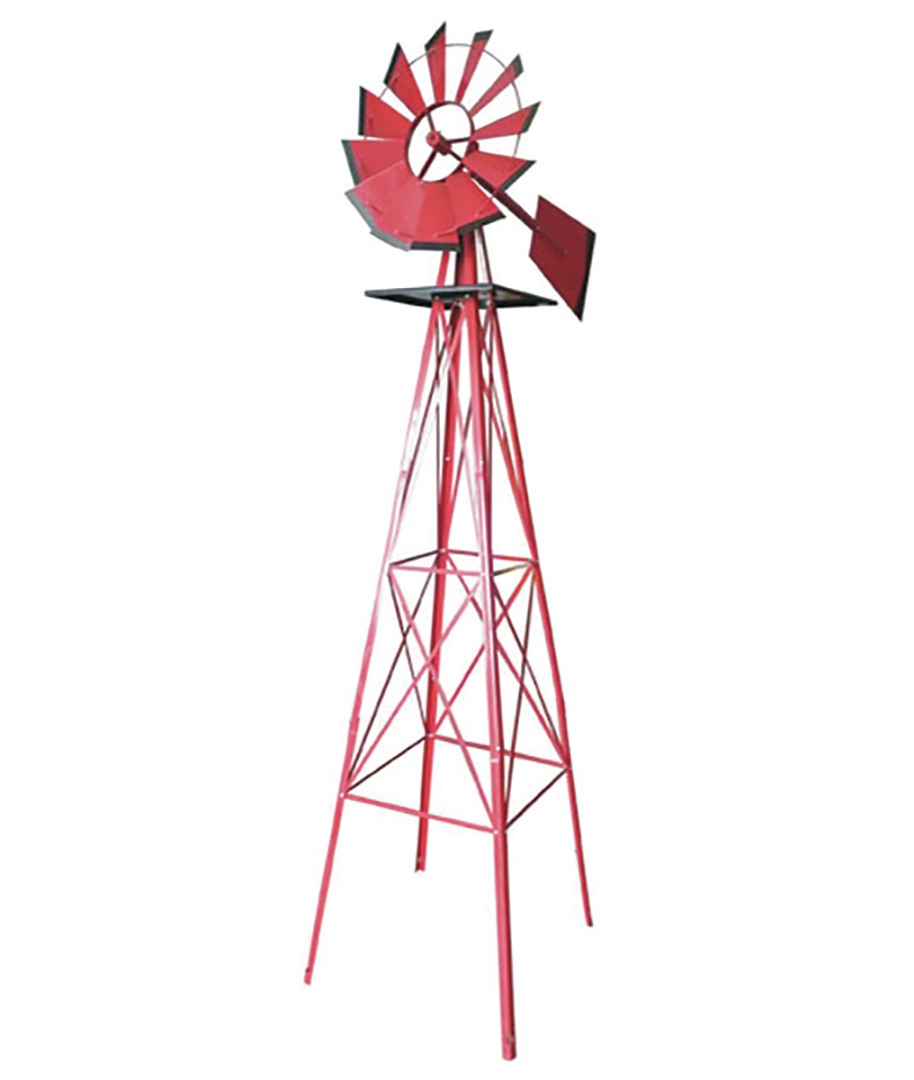 Decorative 8' Red Windmill with Black Accents. Permanently lubricated ball bearings for quiet operation.
