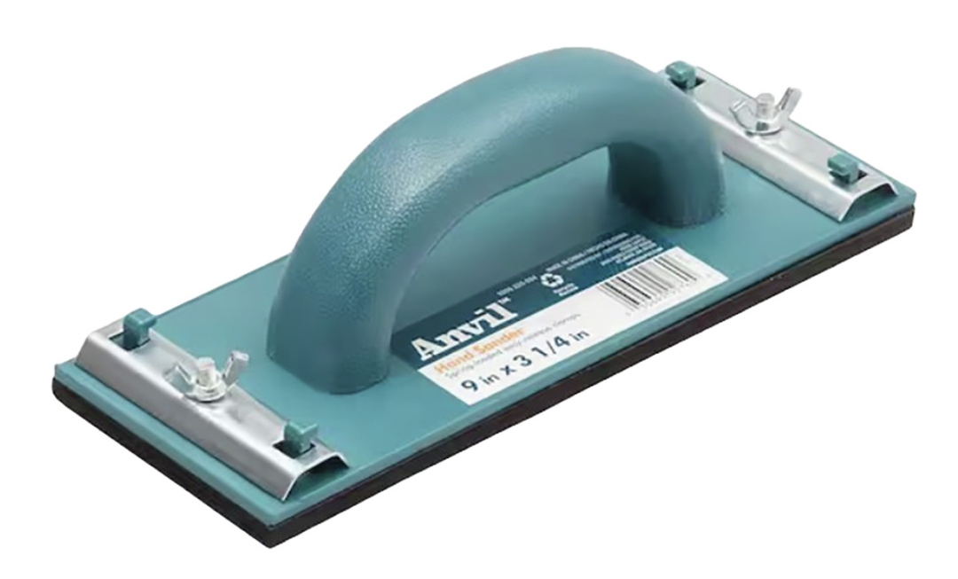 Anvil Brand 9" x 3-1/4" Hand Drywall Sander. Lightweight and Rugged Design. Wing Nut Adjustable Clamps.